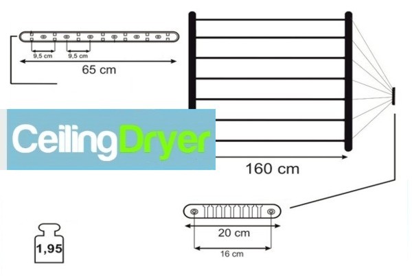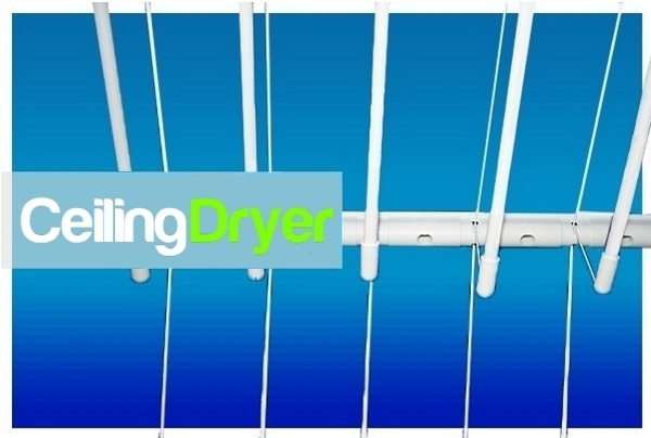 Ceiling Dryer is a unique eco-friendly clothes drying system that mounts to the ceiling. It comprises of two consoles made from plastic that are attached to the ceiling and five, six or seven individual plastic-coated rods with reinforced nylon cords. Each rod can be individually lowered and raised using a pulley system. Simply lower each rod and hang your wet clothes then raise each rod and let the warm air trapped near the ceiling finish off the drying. You can easily hang a full load of laundry without using any floor space at all. When not in use dryer is completely out-of-the-way with no need to fold it or store it. It can be easily installed on drywall and concrete ceilings and of course it can be attached to wood studs.
